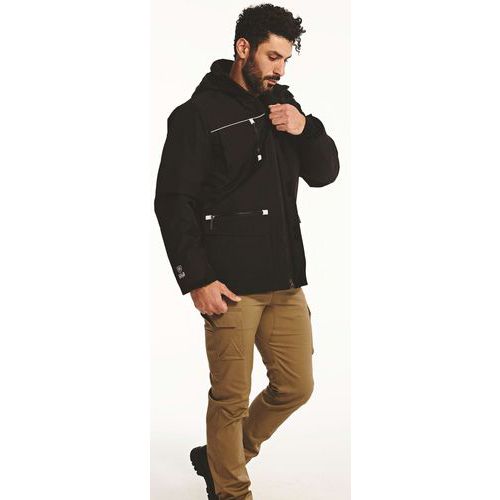 - Parka met ritssluiting over de gehele hoogte met overslag.