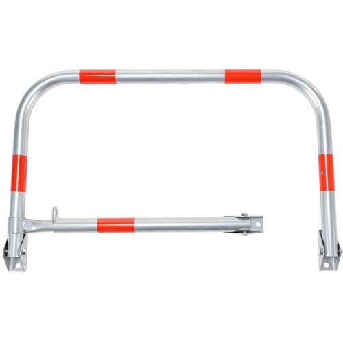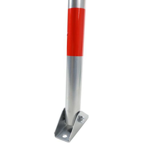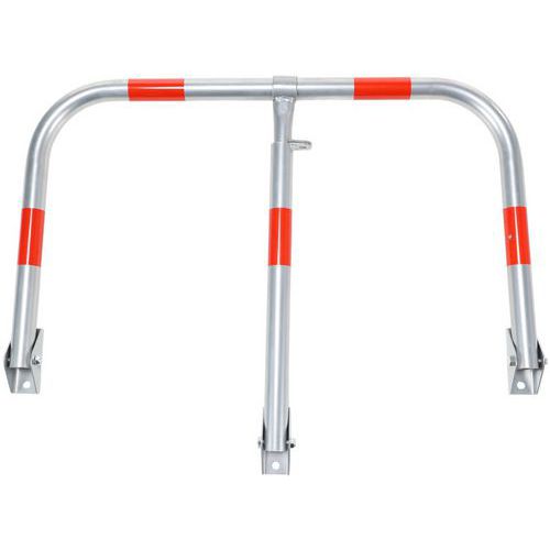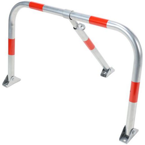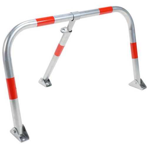 Grijze parkeerbeugel. Ontworpen om parkeerplaatsen te beveiligen door de toegang te beperken tot geautoriseerde voertuigen. Snel en eenvoudig te plaatsen beugel. Verzinkte buis met 5 reflecterende banden op de beugel. Stevig en sterk.