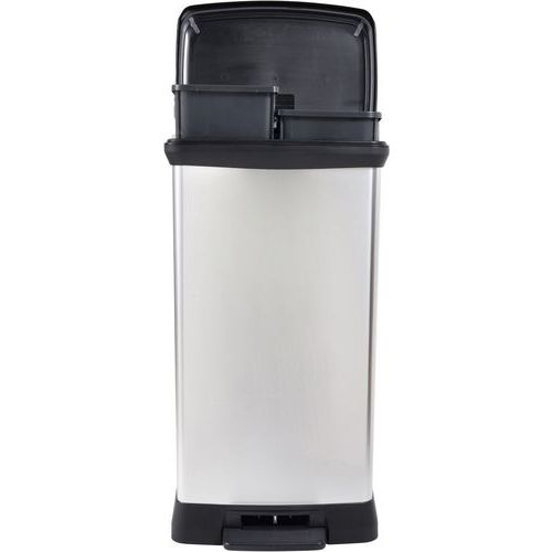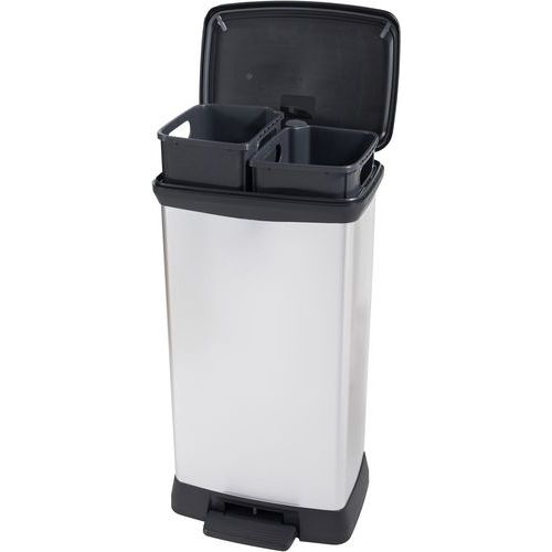 | Productnaam | Pedaalemmer Decobin Duo 23+23 liter, Totale inhoud: 46 L, Hoogte: 720 mm, Breedte: 390 mm, Body kleur: Zilver |