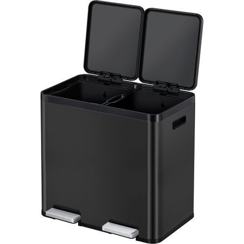Elegante rechthoekige pedaalemmer van geborsteld roestvrij staal met anti-fingerprint coating en kunststof deksels met stille sluiting De twee pedalen bieden aparte toegang tot de plastic binnenemmers (2x22 liter) voor afvalscheiding De pedalen worden los meegeleverd en zijn eenvoudig zelf in elkaar te zetten door het pedaal in de sleuven te klikken Dekselfunctie voor het eenvoudig reinigen van de opvangbak of het verwisselen van de zak.