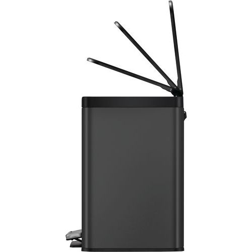 Rechthoekige pedaalemmer van geborsteld RVS met fingerprint proof coating. Voorzien van gedempt sluitend kunststof deksel en twee kunststof binnenemmers (20 + 9 liter) voor het scheiden van afval. De stay-open functie vergrendelt het deksel, voor het makkelijk schoonmaken van de afvalbak of wisselen van de afvalzak.