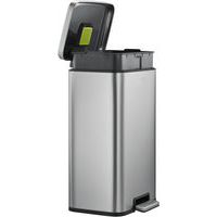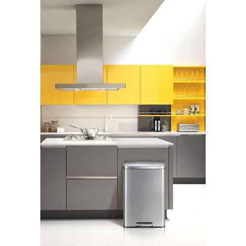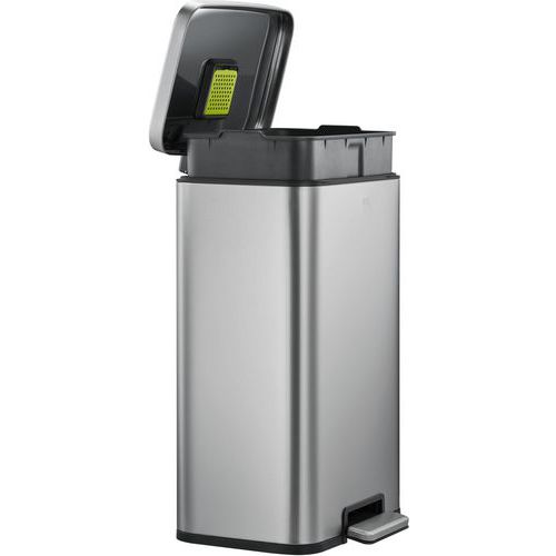 - Elegante rechthoekige pedaalemmer van geborsteld RVS met anti-vingerafdruk coating en geruisloos sluitende deksel.
