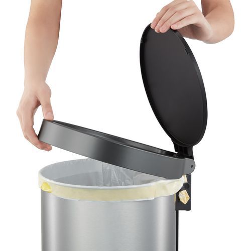 Pedaalemmer van mat RVS met fingerprint proof coating en gedempt sluitend kunststof deksel.