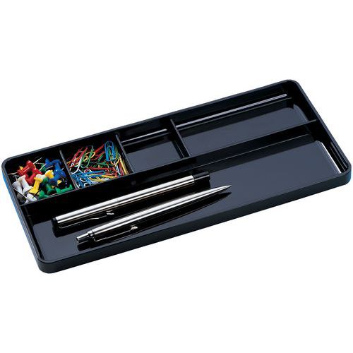 | Productnaam | Pennenbak HAN 5 vakken, Materiaal: Polystyreen, Aantal vakken: 5, Kleur: Zwart, Hoogte: 19 mm |