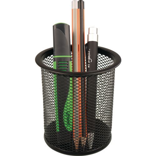 | Productnaam | Pennenbakje the round network, Materiaal: Staal, Aantal vakken: 1, Kleur: Zwart, Hoogte: 10 cm |