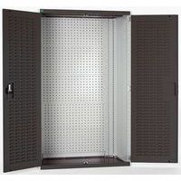 Werkplaatskast voor het overzichtelijk opbergen van uw gereedschap. Voorzien van perfogaten en sleufpanelen. Sluit de deuren veilig af met de driepuntssluiting en het cilinderslot.