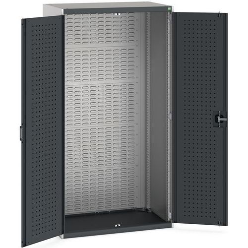 Werkplaatskast voor het overzichtelijk opbergen van uw gereedschap. Voorzien van perfogaten en sleufpanelen. Sluit de deuren veilig af met de driepuntssluiting en het cilinderslot. Gemaakt in het UK Max. belasting (kg) : 1500 Klantgarantie : 3 jaar
