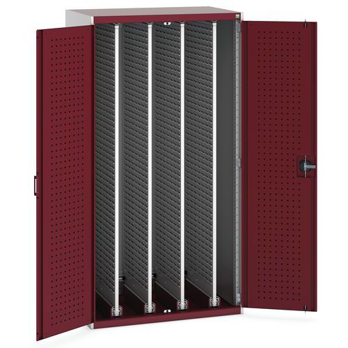 Werkplaatskast voor het overzichtelijk opbergen van uw gereedschap. Voorzien van perfogaten en sleufpanelen. Sluit de deuren veilig af met de driepuntssluiting en het cilinderslot. Gemaakt in het UK Max. belasting (kg) : 1500 Klantgarantie : 3 jaar
