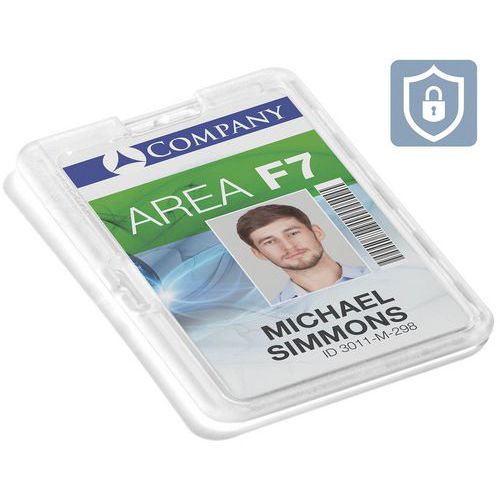| Productnaam | Permanente badgehouder voor 1 beveiligingspas, Hoogte: 54 mm, Breedte: 87 mm, Materiaal: Polycarbonaat |