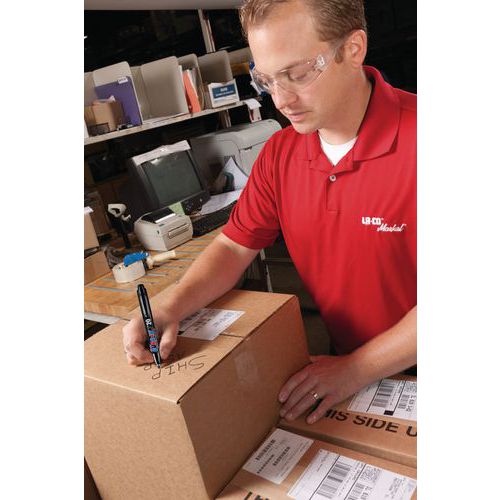 - Markeerstift met een intrekbare conische punt en een drukknop.