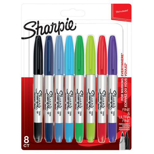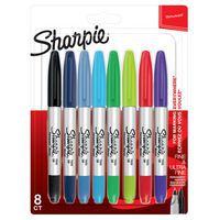 Permanente markeerstiften Sharpie met dubbele fijne en extra fijne punt. Diverse kleuren. Set van 8