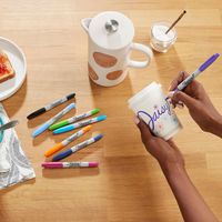 De markeerstift Sharpie is geschikt voor gebruik op kunststof, glas, hout, metaal en textiel.