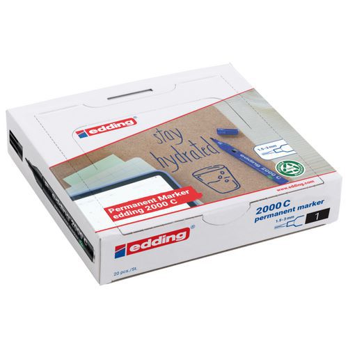 | Productnaam | Permanente markeerstift zwart Edding 2000C, Inkt kleur: Zwart, Min. lijndikte: 1.5 mm, Max. lijndikte: 3 mm |