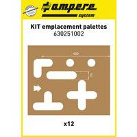 - Sjablonen voor positionering van pallets, 12 platen. Deze worden gebruikt met de verf Ampère Traffic Paint in spuitbus en de markeerverf Ampère Traffic Road Marking Paint in pot. Eenvoudig te gebruiken. Van geolied en verstevigd karton van uitstekende kwaliteit, herbruikbaar