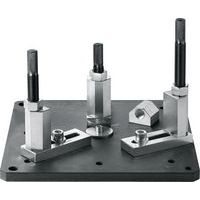 - Plaatst één uiteinde op gevaarlijke instabiele structuren en minimaliseert het risico op verwondingen De speciale rangschikking van de bevestigingsdraden, de lange instelbare hoogte en de meegeleverde korte beugel garanderen een precieze ondersteuning Centreerinrichting voor het vastzetten van de beugelbouten in een gat in het onderdeel Kan ook worden gebruikt met standaard trekkersets en drukhulzen Centreren via de ontvangstdraad in het midden van de perstafelbeugel