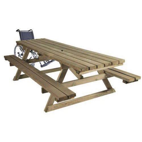 | Productnaam | Picknicktafel geschikt voor mindervaliden, Materiaal: Pijnboom, Type bevestiging: Grondanker |