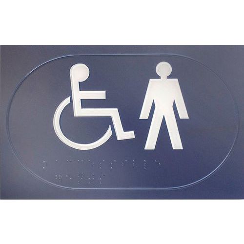 | Productnaam | Pictobord voor rolstoelgebruiker + heren in relief en in braille, Zelfklevend: ja, Materiaal: PVC |