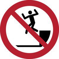 Pictogram bordje Verboden vanaf de kant te springen, Zelfklevend: nee, Stijf: ja, Norm ISO 7010: ja