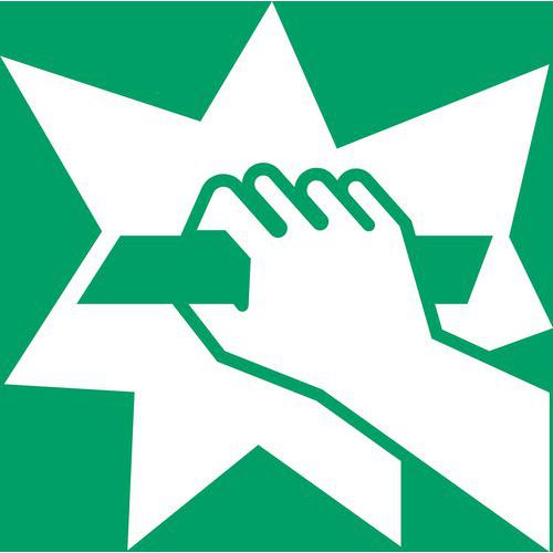 Dit symbool duidt op een eenvoudige manier aan dat het glas moet worden gebroken om zo de nooduitgang te openen.