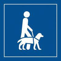 Pictogram PI PF 046 geeft aan dat geleidehonden en hulphonden zijn toegestaan.