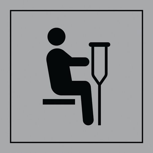 Pictogram PI TF 023 geeft een gereserveerde zitplaats voor mensen met kruk aan.