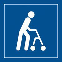 Pictogram PI PF 045 geeft de toegankelijkheid aan voor personen die slecht ter been zijn.