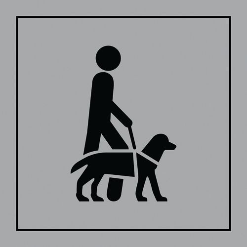 Pictogram toegankelijkheid voor geleide- of hulphonden in Gravoply