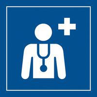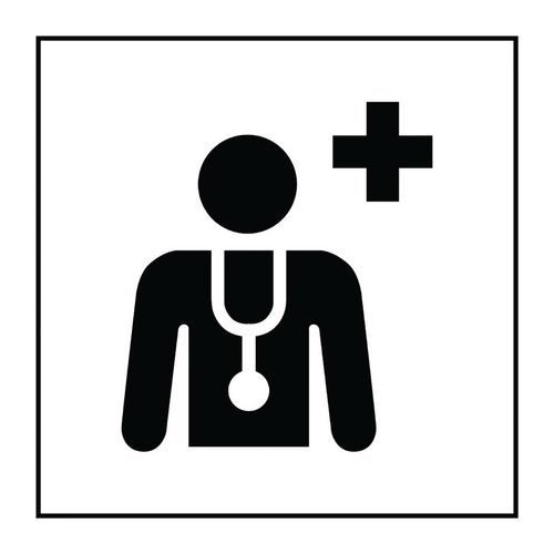 Dit pictogram PI PF 044 informeert het publiek over de locatie van een ziekenhuis of een arts.