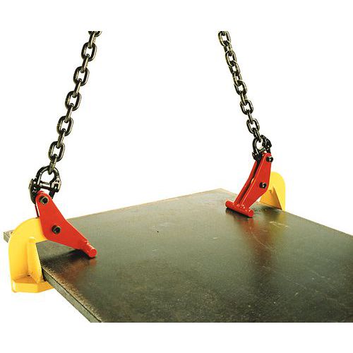 - U gebruikt deze plaatheftang per paar met kabellengen met 2 kettingen.
