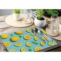 | Productnaam | Placemat citroenen, Aantal stuks: 6, Breedte: 450 mm, Lengte: 320 mm, Kleur: Bont gekleurd, Materiaal: PVC |