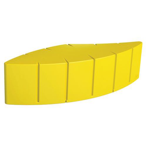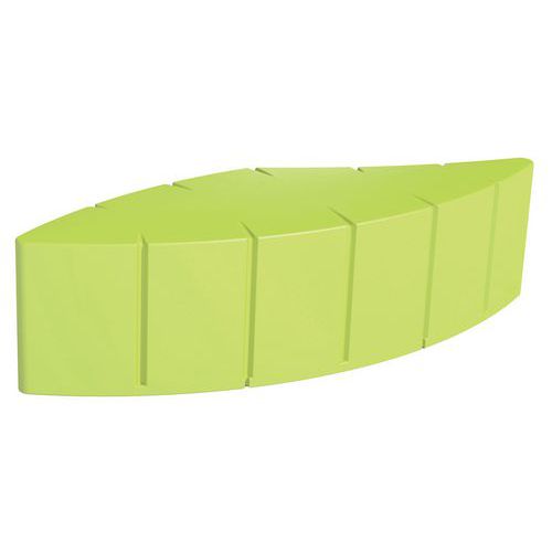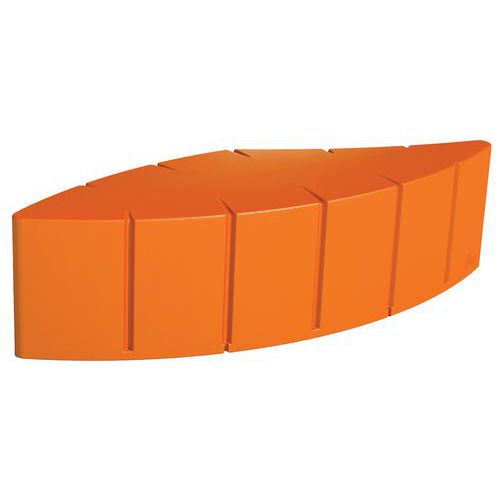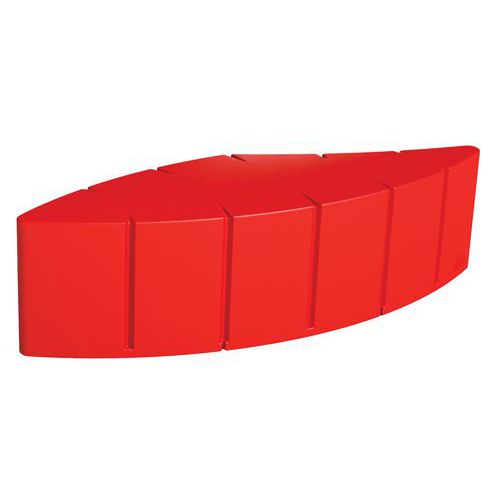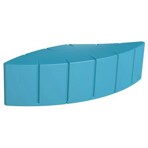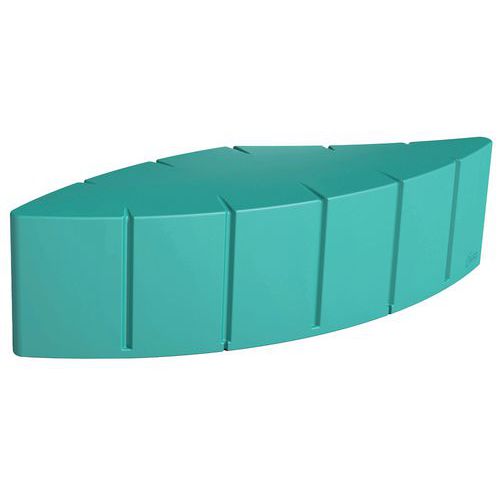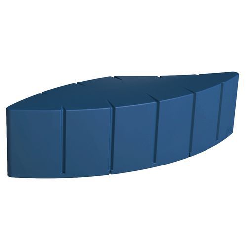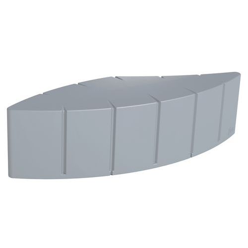 In in de massa gekleurd rotatiegegoten polyethyleen, gemiddelde dikte 7 mm. Installatie binnen of buiten doordat het gebruikte polyethyleen weer- en UV-bestendig is (temperatuur: -30°C/+60°C). Onderhoud: hogedrukreiniger (eenmaal/jaar). 10 standaardkleuren. Module om te ballasten met zand (niet inbegrepen) of optioneel aan de grond te bevestigen met draadstangen (4 verankeringszones). Andere standaard RAL's op aanvraag.