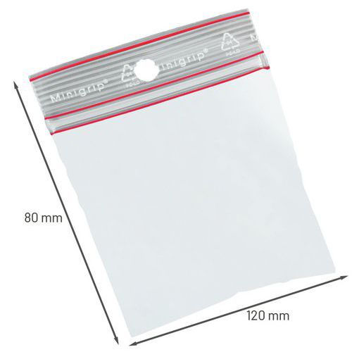 Plastic zak Minigrip, Dikte: 100 µm, Materiaal: Polyethyleen, Hoogte: 120 mm, Breedte: 80 mm