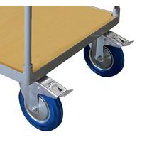 - 4 stille wielen, 2 vaste wielen en 2 zwenkwielen met rem