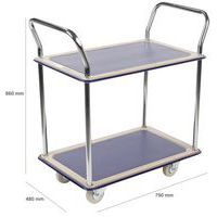 Plateauwagen met 2 plateaus, Zwenkwiel Ø: 100 mm, Max. belasting: 120 kg, Totale hoogte: 860 mm
