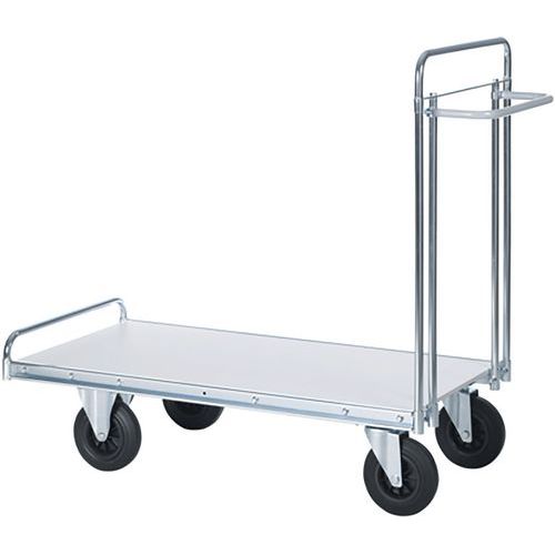 Plateauwagen met robuust frame waardoor de wagen eenvoudig te besturen is, zelfs als de last zwaar is.