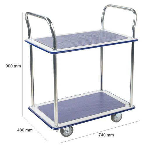 | Productnaam | Plateauwagen van metaal, Zwenkwiel Ø: 100 mm, Max. belasting: 200 kg, Totale hoogte: 900 mm |
