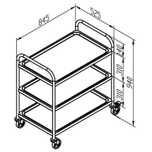 Plateauwagen van roestvast staal - 3 plateaus - Draagvermogen 150 kg