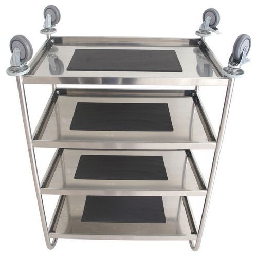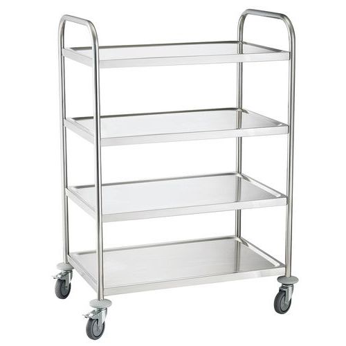 Plateauwagen van roestvast staal - 4 plateaus - Draagvermogen 200 kg