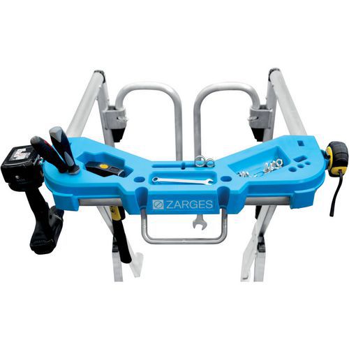 Perfecte organisatie van werkzaamheden op hoogte met een goed georganiseerde gereedschapshouder met hoge capaciteit.