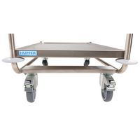 Geluiddichte plateau voor een stil transport. Kleine rand om de producten op hun plaats te houden. Platformwagen met bumpers op de vier hoeken.