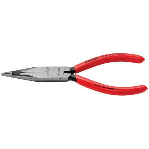 | Productnaam | Platspitse tang met middensnijder (telefoontang), Type tuit: Rechts halfrond, Lengte mes: 47 mm |