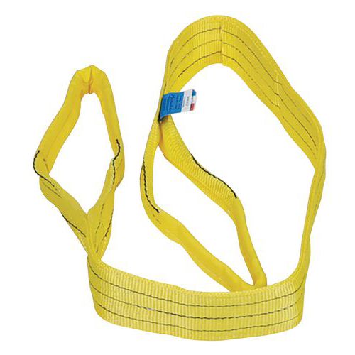Platte hijsbanden met 2 versterkte lussen van 1% polyestervezel. Bestand tegen alle vormen van wrijving en schuren, zeer goed bestand tegen UV-straling en chemische producten. Markering van de producten door middel van een uiterst bestendig etiket op de hijsband. Norm: EN 1492-1+A1 29, veiligheidscoëfficiënt: 7. Geschikt voor toepassing in de industrie. CE Klantgarantie : 10 jaar