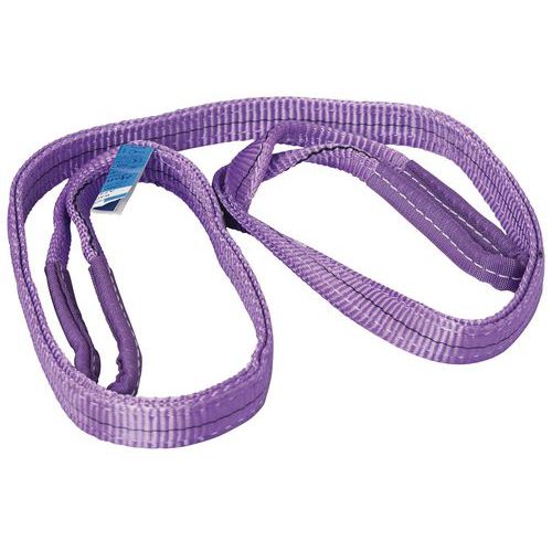 Platte hijsbanden met 2 versterkte lussen van 1% polyestervezel. Bestand tegen alle vormen van wrijving en schuren, zeer goed bestand tegen UV-straling en chemische producten. Markering van de producten door middel van een uiterst bestendig etiket op de hijsband. Norm: EN 1492-1+A1 29, veiligheidscoëfficiënt: 7. Geschikt voor toepassing in de industrie.