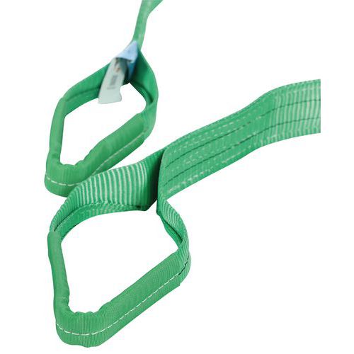 Platte hijsbanden met 2 versterkte lussen van 1% polyestervezel. Bestand tegen alle vormen van wrijving en schuren, zeer goed bestand tegen UV-straling en chemische producten. Markering van de producten door middel van een uiterst bestendig etiket op de hijsband. Norm: EN 1492-1+A1 29, veiligheidscoëfficiënt: 7. Geschikt voor toepassing in de industrie.