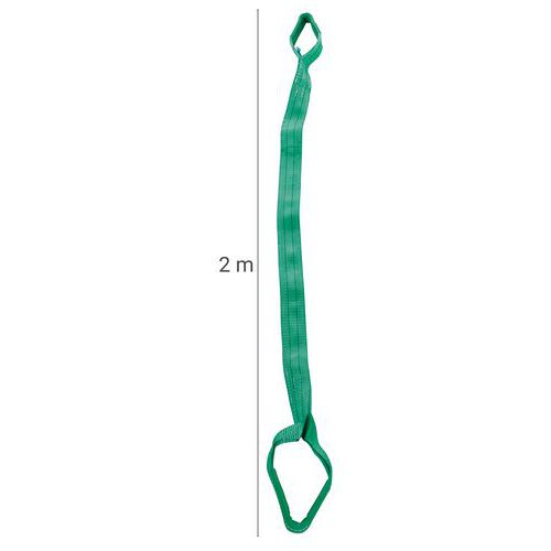 Platte hijsbanden met 2 versterkte lussen van 1% polyestervezel. Bestand tegen alle vormen van wrijving en schuren, zeer goed bestand tegen UV-straling en chemische producten. Markering van de producten door middel van een uiterst bestendig etiket op de hijsband. Norm: EN 1492-1+A1 29, veiligheidscoëfficiënt: 7. Geschikt voor toepassing in de industrie.