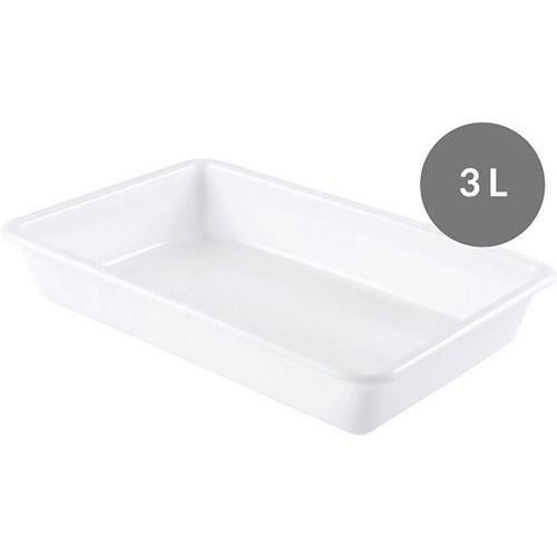 Platte, stapelbare bak voor voedingsmiddelen, Totale inhoud: 3 L, Totale hoogte: 68 mm Platte, stapelbare bak voor voedingsmiddelen, Totale inhoud: 3 L, Totale hoogte: 68 mm