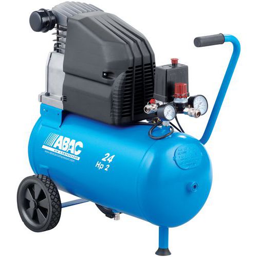 - Eenvoudig te verplaatsen compressor met wielen en handgreep.
