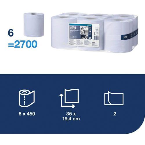 | Productnaam | Poetsrol Tork met centraal afrolsysteem, Kleur: Blauw, Type: Systeem M2, Aantal vouwen: 2 |