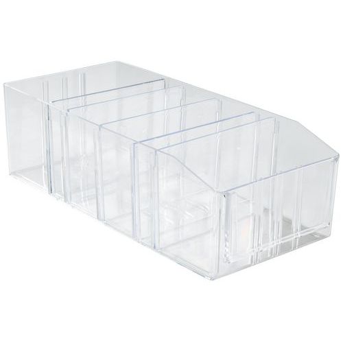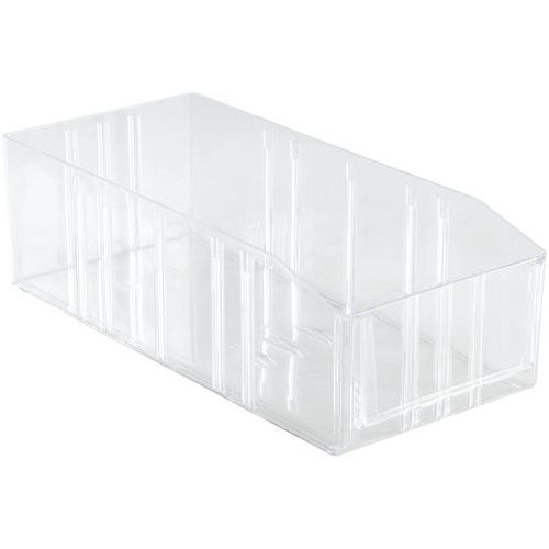 Zeer stevig. Indeelbare magazijnbak Verlaagde voorkant voor een betere zichtbaarheid van de inhoud. Gladde wanden en bodem. Hoge weerstand tegen zuren.