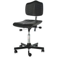 Een praktische en stevige werkstoel met zitting en rugleuning van schokdempend gegoten kunststof met schuim van gegoten polyurethaan.